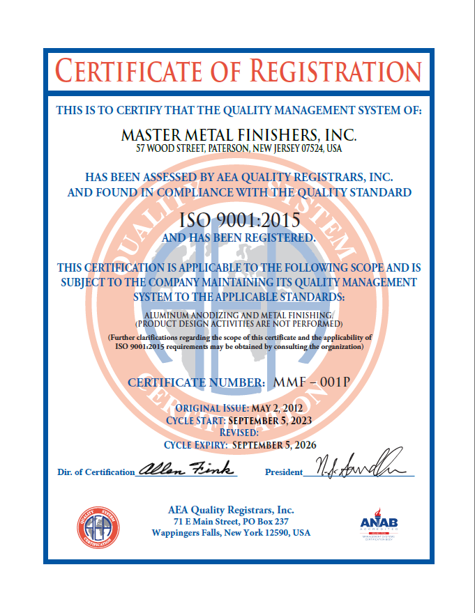 Master Metal is audited by ISO to ensure that our quality systems are rigorous and well-maintained. Quality is our highest goal, and our certificates indicate our compliance.
